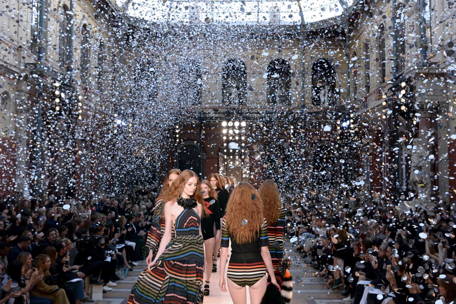 Models present creations during the 2017 Spring/Summer ready-to-wear collection for Sonia Rykiel in Paris.