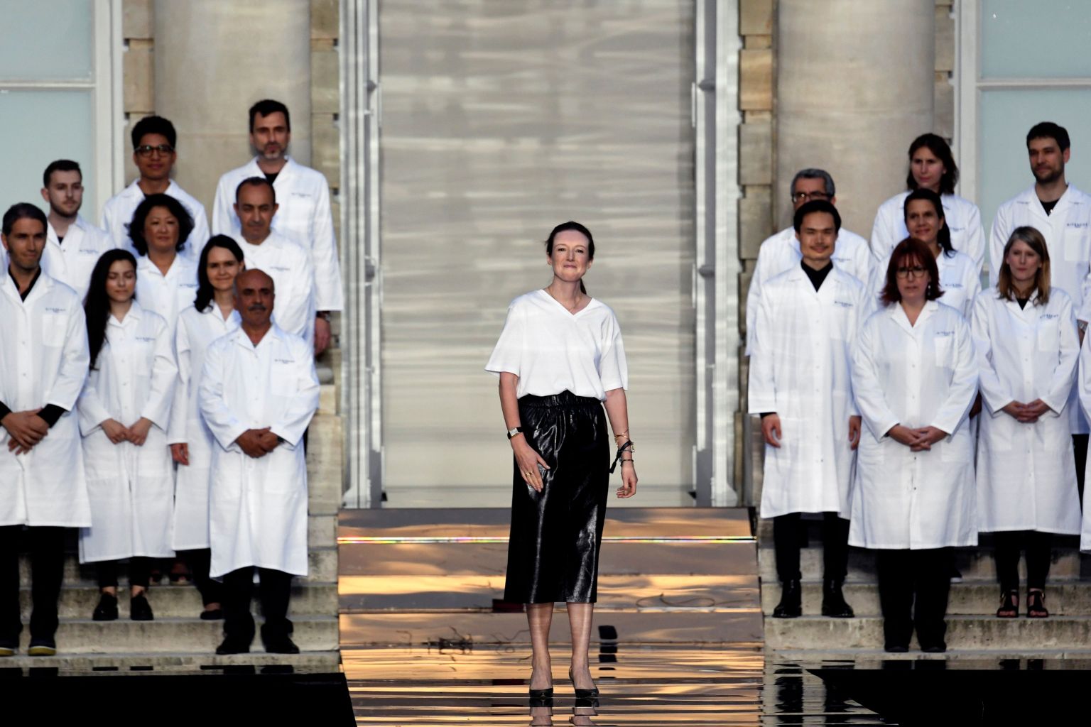 Riding her post-Meghan Markle royal wedding wave of acclaim, Clare Waight Keller, artistic director of Givenchy, was awarded pole position on opening night for what was only her second couture collection ever. In the gardens of the Archives Nationales - as cawing sea gulls flew overhead, circling the house's drone, and the arched windows of the cream stone edifice were reflected in the mirrored catwalk - she rose to the occasion with an ode to her house's founder, Hubert de Givenchy, who died earlier this year.