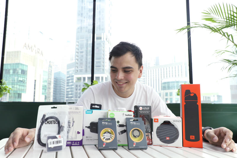 Mr Kenneth Koh, 25, poses for a picture with some of his past purchases at his office at Keppel Towers 2, on Nov 7, 2019.