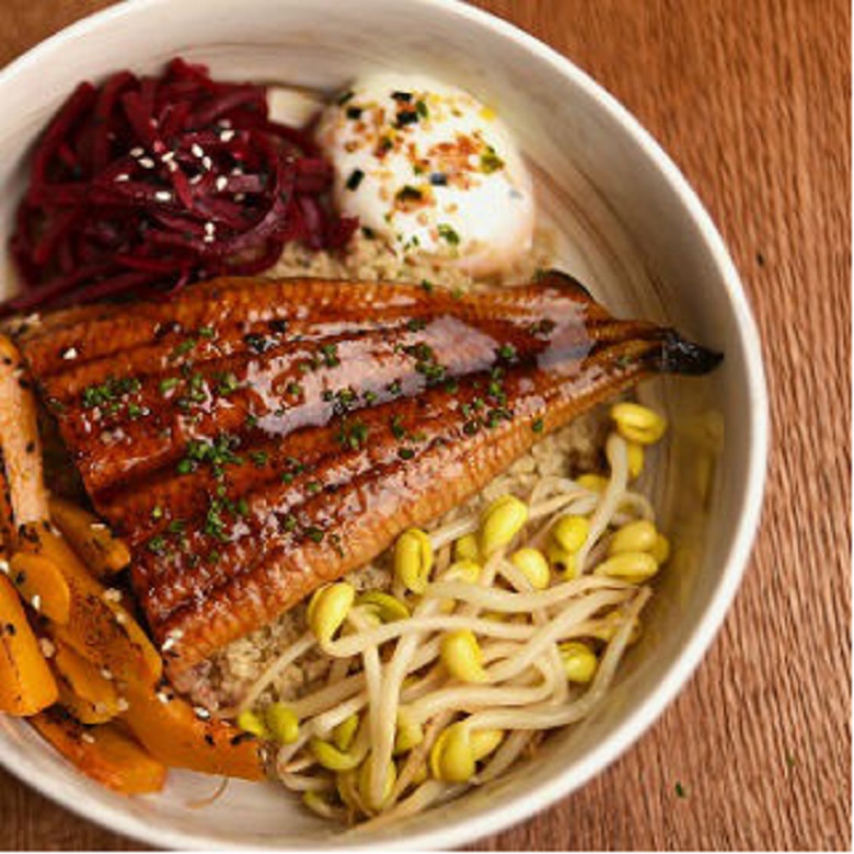 Genki is lighter on the palate with pickled beansprouts and pickled beets for a zippy tang, and a slab of silky, caramelly grilled eel.
