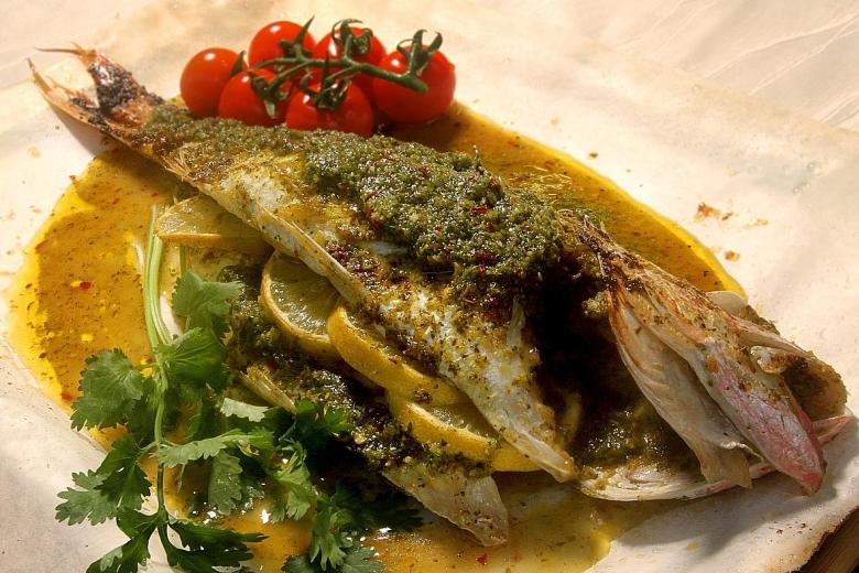 I use angkoli (goldband snapper) for this recipe of baked fish with chimichurri, a piquant sauce or marinade traditionally used in Argentinian cooking.