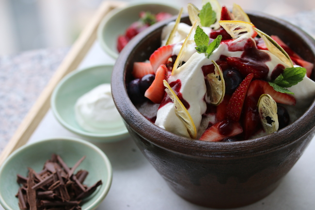 "The makgeolli bingsu is our signature dessert, prepared with the finest ingredients of makgeolli and various berries and toppings," he says. "Many foreigners find the milky, chalky taste of the rice wine unfamiliar at the start, so we have eliminated the strong alcoholic taste by vaporising the alcohol and mixing it with berries and toppings."