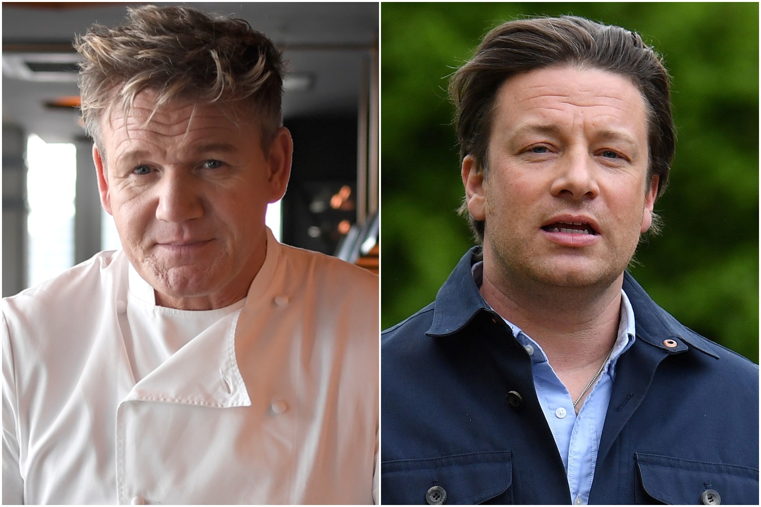 Celebrity chef Gordon Ramsay stays above water while Jamie Oliver struggles to stay afloat