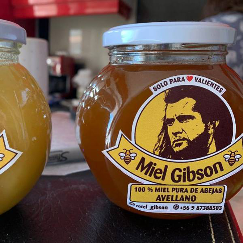Ms Yohanna Agurto used an image of Mel Gibson from the 1995 movie Braveheart to promote her honey, Miel Gibson (above), along with the slogan "only for the brave".