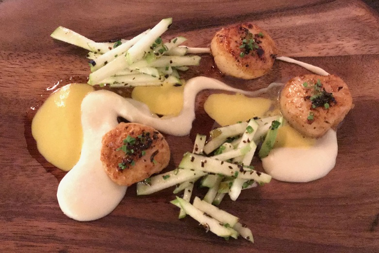 The mushroom soup is whipped into a cappuccino and served piping hot - standard but satisfying. As far as seafood goes, don't expect great quality but the chef (a Les Amis alumnus) pulls ingredients together competently. Pan-seared scallops (S$19) are average in quality but get a lift from a crisp green apple salad, cauliflower puree and a kind of apple sauce-olive oil emulsion.