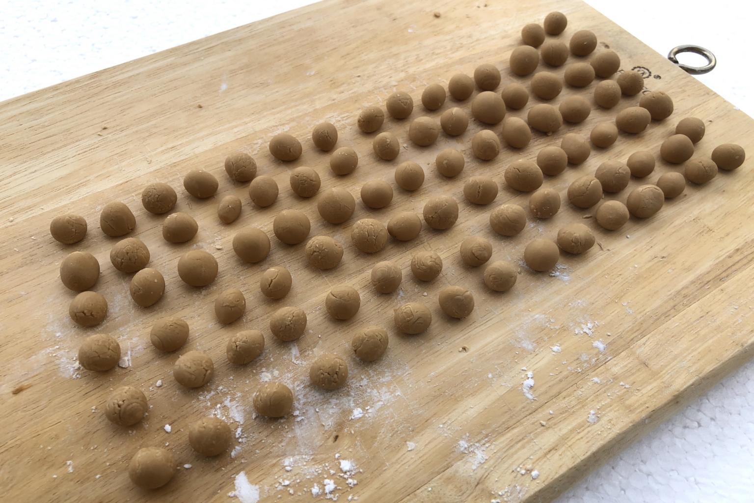 Getting the right proportions of water, starch and black sugar for the dough is no mean feat.