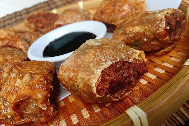 SINGAPORE (THE NEW PAPER) - A meaty, moist, savoury crunchiness with a sweetness from various vegetables - that is happiness rolled up in crispy bean curd skin.