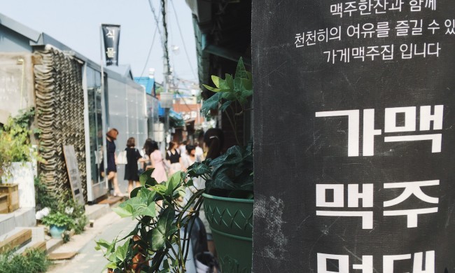 Sikmul, an all-day bar that doubles as a coffee shop, is run by hipsters dressed in Hawaiian shirts and cropped jeans. Down the narrow alleyway is 12 Months, a grocery store and high-end food court. A few steps away is Turtle Supermarket, where customers can grill dried fish over a fire. The shop owners also host community meetings once a month to discuss ways to prevent corporate-financed stores from moving into the area. It shows how quickly and drastically the neighbourhood has developed, with food as the catalyst.