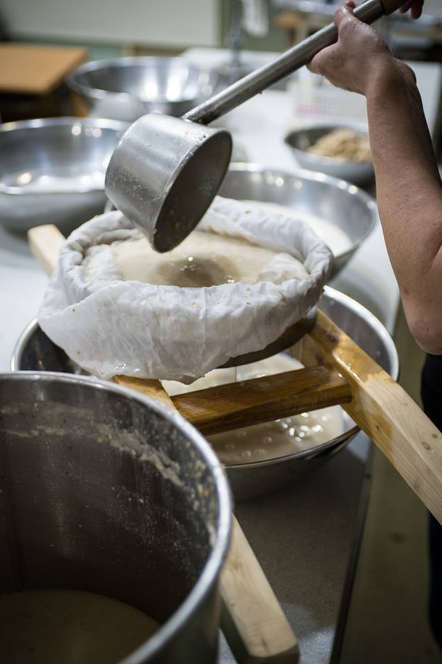 Filtering makgeolli during a brewing class at The Sool Company.