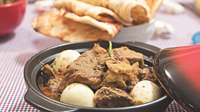The dish takes an entire night to cook and it is ready to eat in the early morning.
