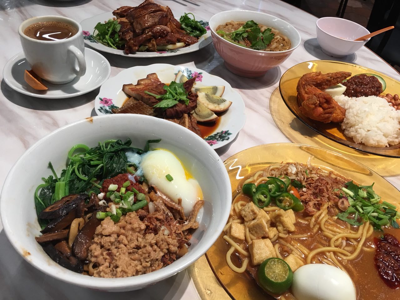 A selection of dishes: (clockwise, from bottom left) Damansara chilli pan mee, kway chap from Kway Teow Kia, Skudai duck rice, Kuantan nasi lemak and Morgan mee rebus.