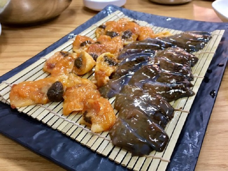 It is difficult to grab the slippery pieces of haesam using chopsticks. The sea creature is usually enjoyed with chilli paste, as it has a relatively mild taste.