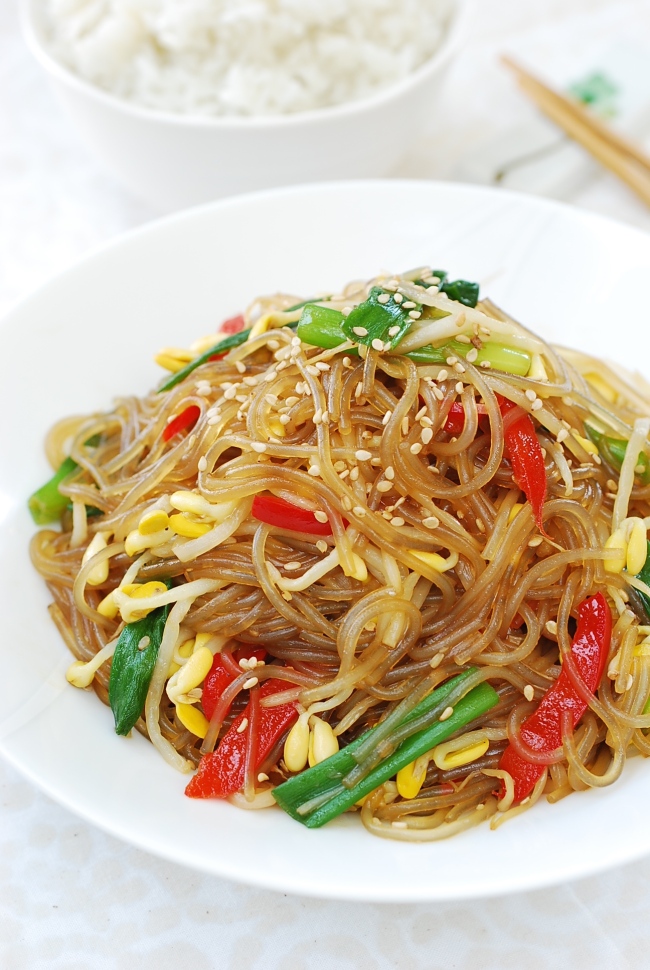 This recipe is a simple variation of japchae made with soybean sprouts.