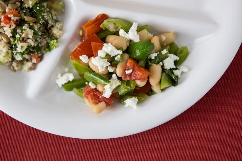 Heirloom tomatoes, cannellini beans and snap peas - four servings