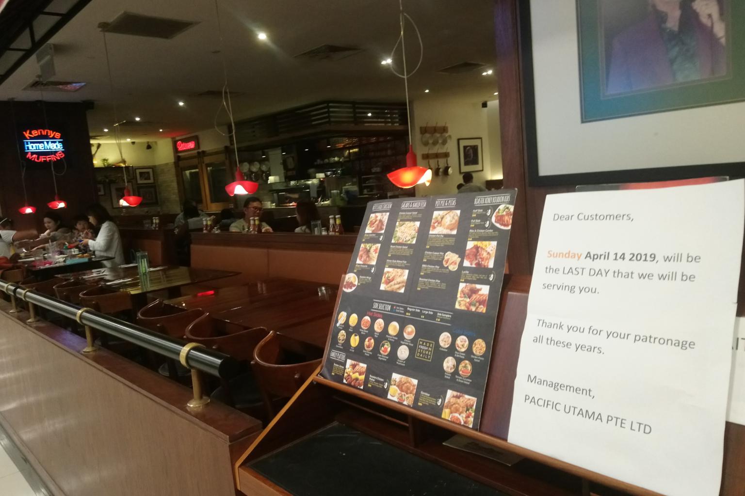 A notice was put up at the Kenny Rogers Roasters outlet at Great World City, which is on the first floor of the mall in Kim Seng Promenade, stating that April 14, 2019, would be their last day of operations.