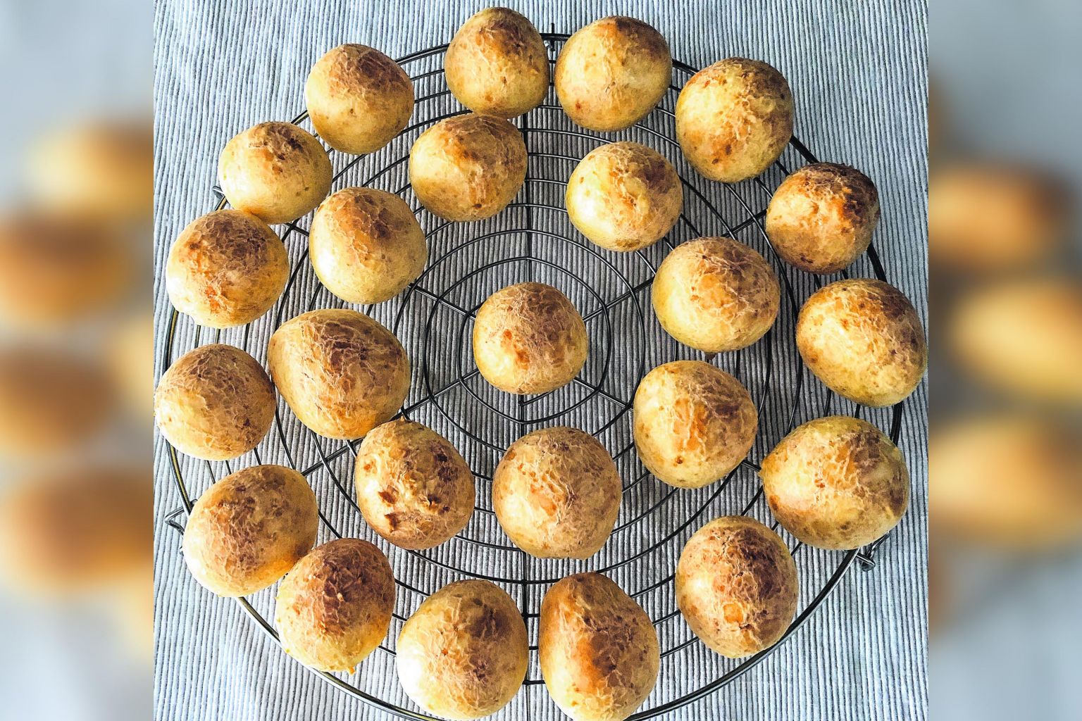 Got some tapioca starch left over from making boba at home? Make this gluten-free bread. It has a mochi-mochi texture and is a popular snack in Brazil, where it is called pao de queijo.