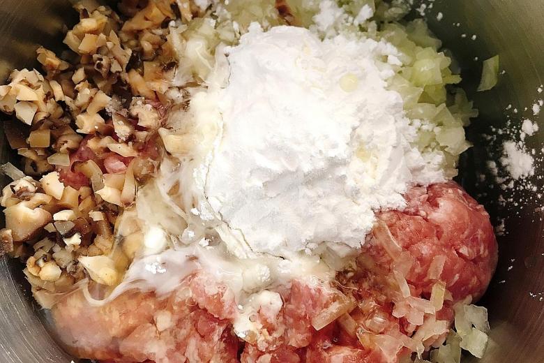 I recommend using pork collar meat for the filling as it is not too oily or too lean. I added egg white to help bind the mixture and to smoothen its texture.