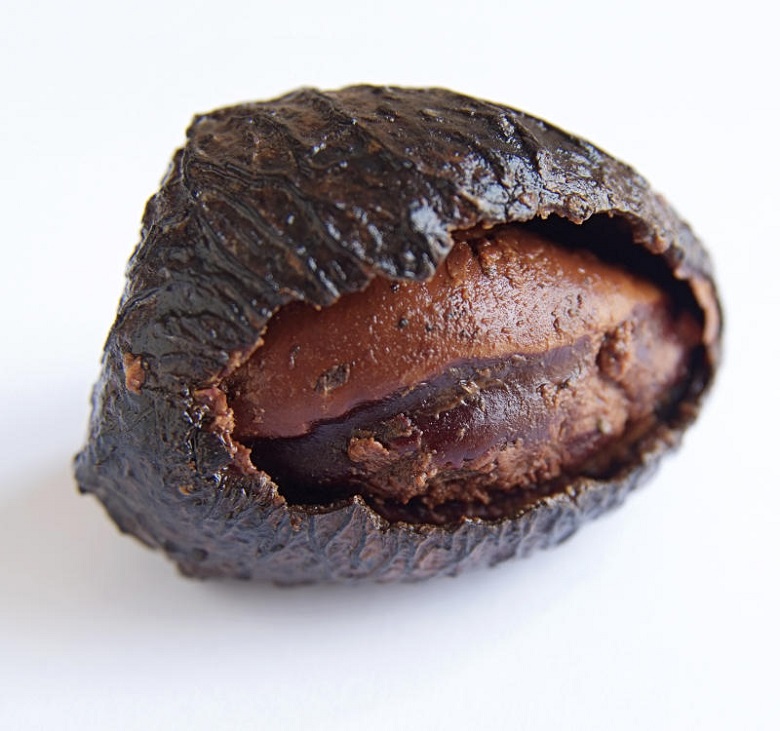 The raw seed of the kepayang “fruit” or buah keluak (above) has cyanide and is deadly. But when properly cured, the fruit is a culinary miracle.