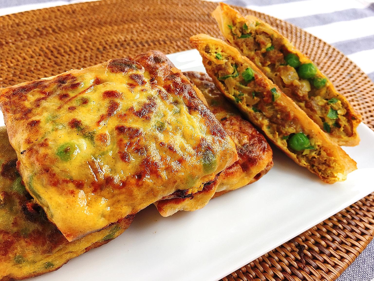 If you fancy enjoying murtabak at home, minus the mess of kneading dough, use ready-made spring roll pastry to make a miniature version with egg - murtabak telur mini.