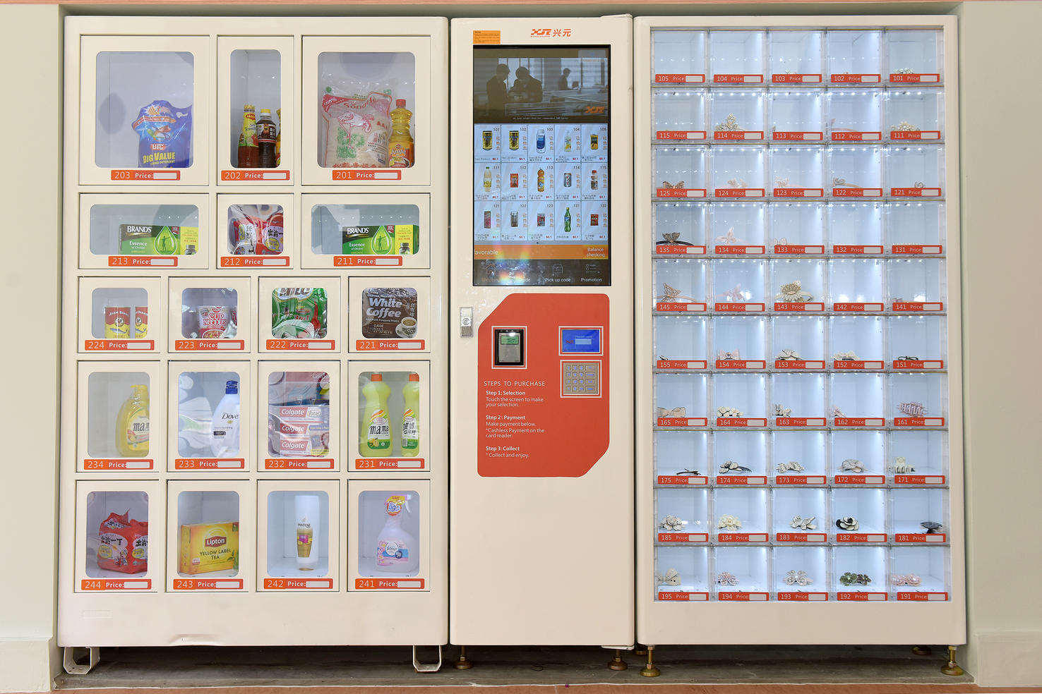 The vending machines dispense items such as ready-to-eat meals, snacks, medical supplies and knick-knacks.