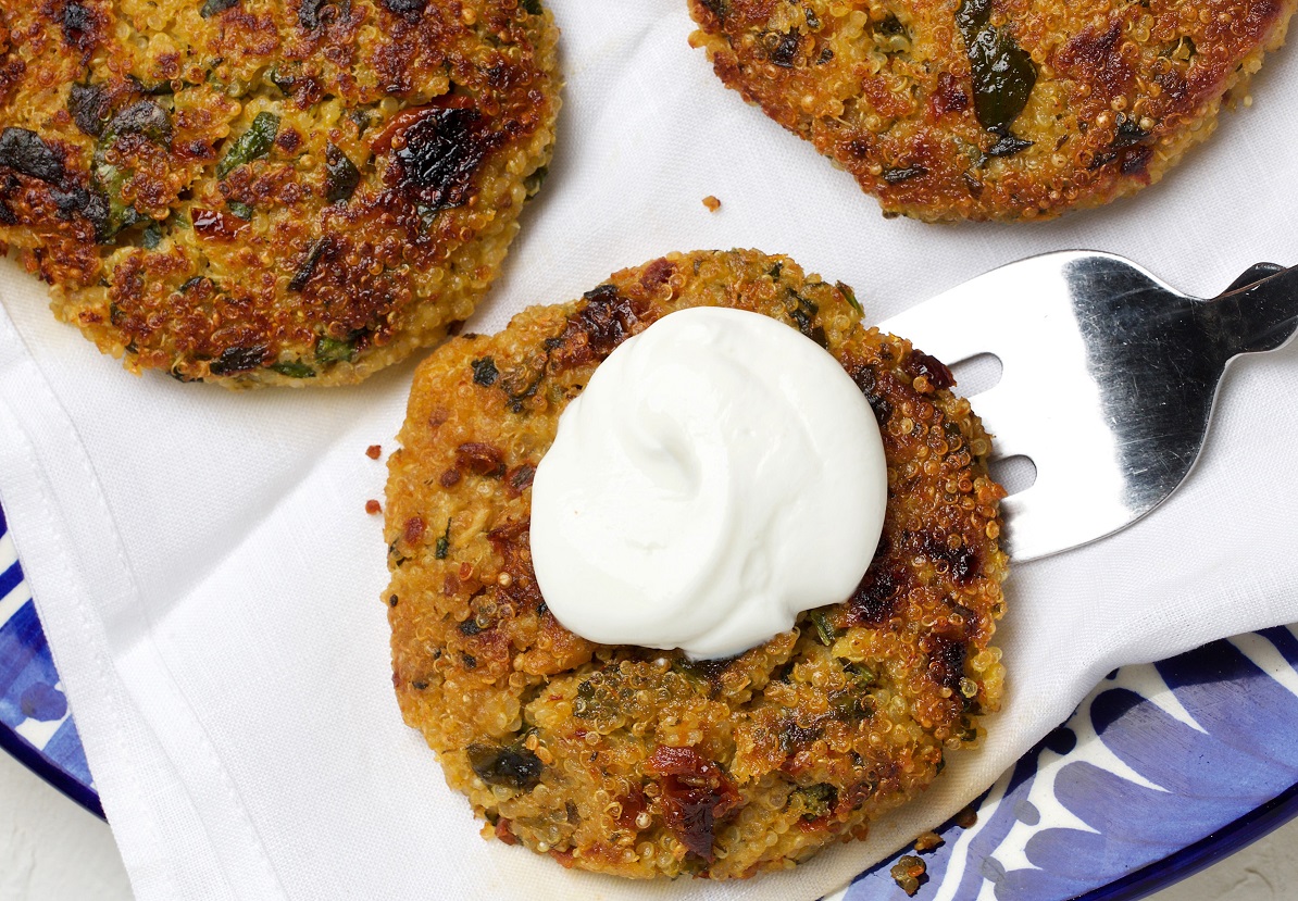 Quinoa Cakes With Spinach and Sun-Dried Tomatoes