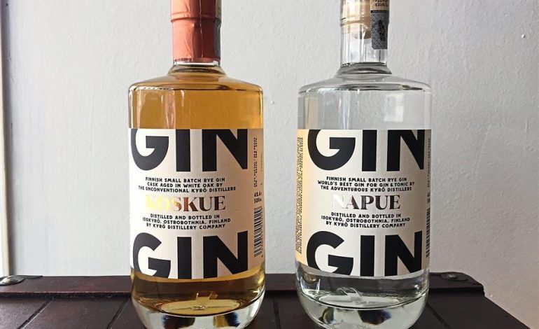 Kyro's two gins are the barrel-aged Koskue Gin (left) and the regular Napue Gin (right).