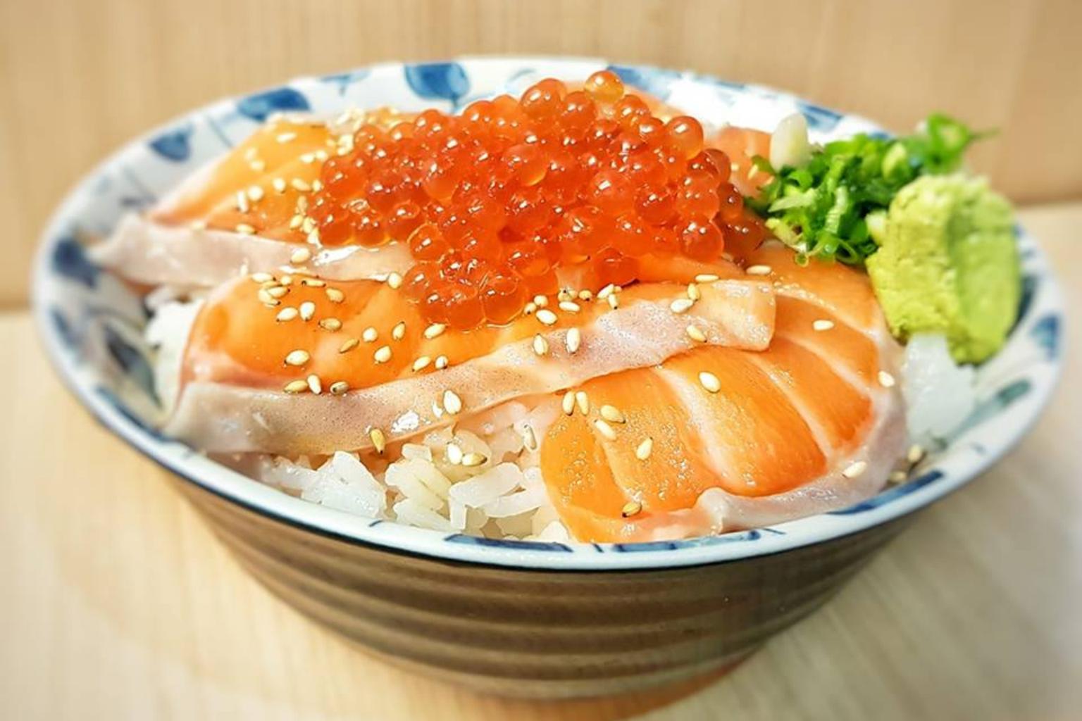 A bowl of Japanese rice topped with salmon and salmon roe is given a bombastic description by sushi restaurant Sushiro on its Facebook page.