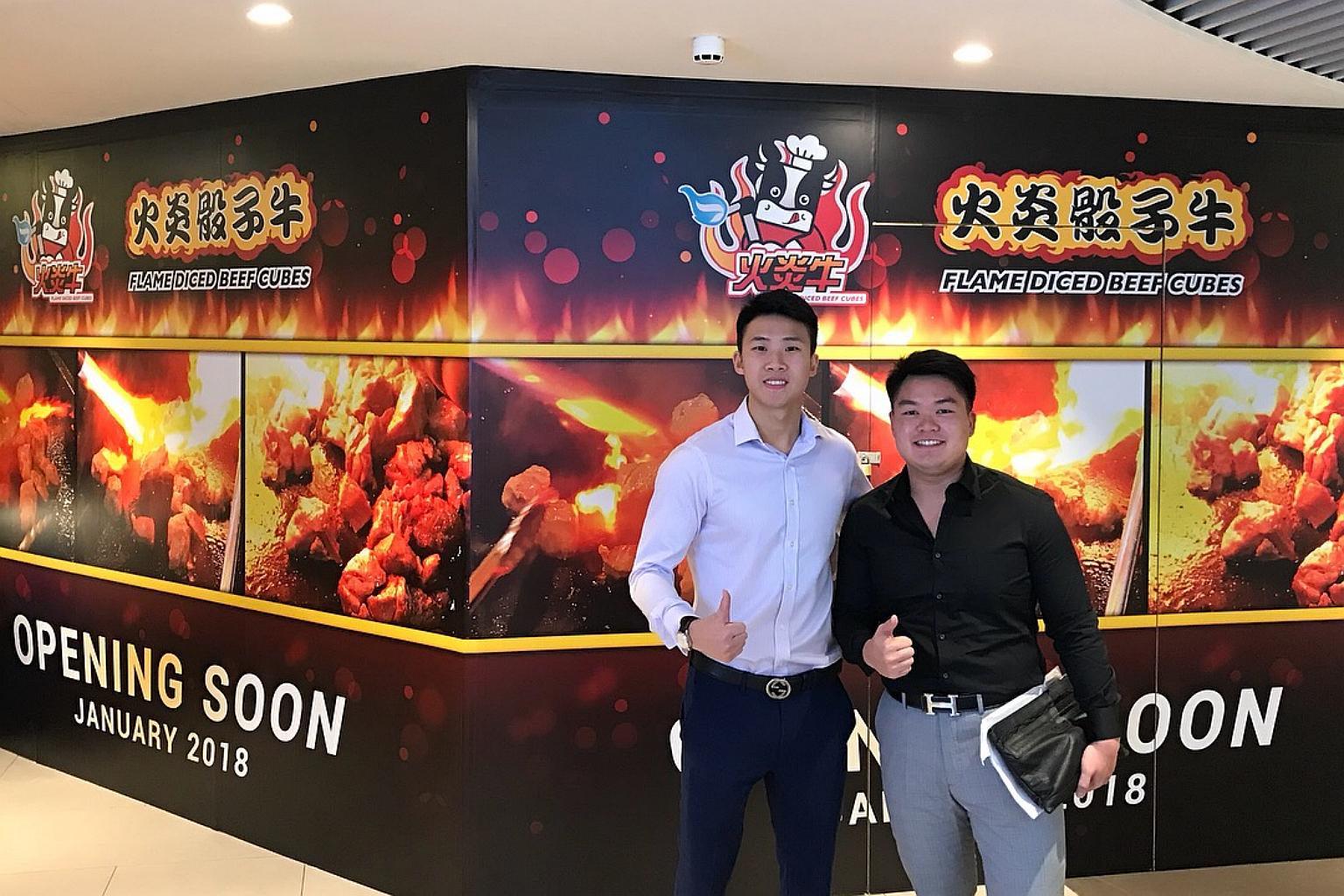 Co-owners Sean Lee (left) and Cheo Tian Feng are opening Huoyanshaiziniu, which sells flamed, diced beef cubes, on Jan 20.