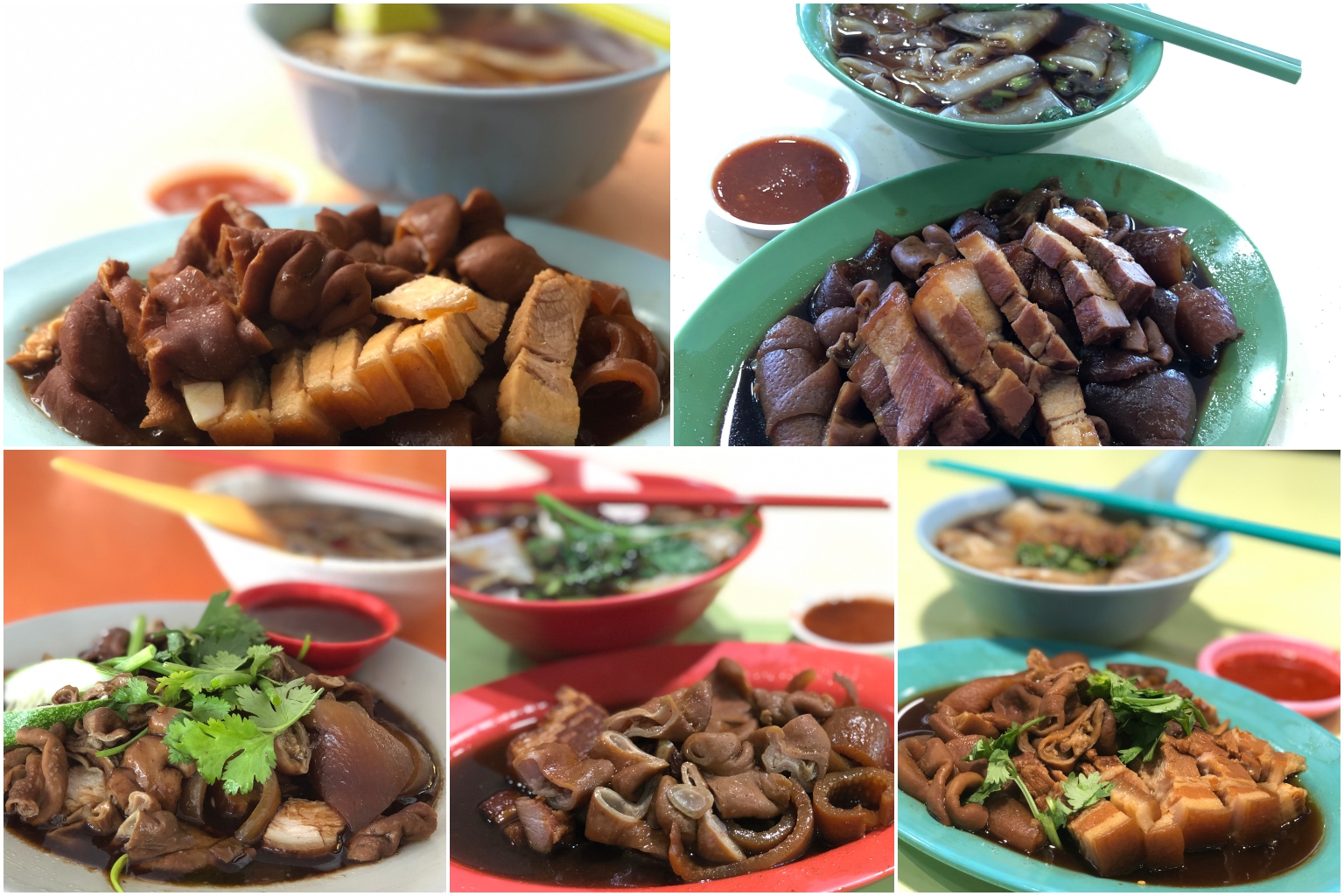 (Clockwise from top left): Kway chap from To-Ricos Guo Shi, kway chap from Lao San, kway chap from Blanco Court, kway chap from Chuan Seng, and kway chap from Quan Lai.