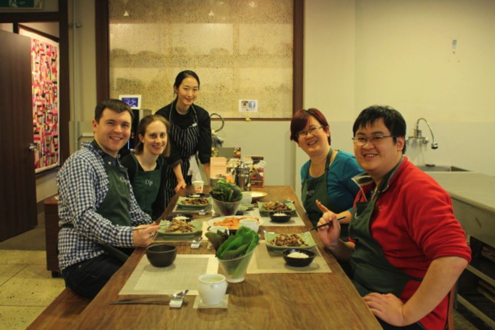 A cooking class for tourists in South Korea.