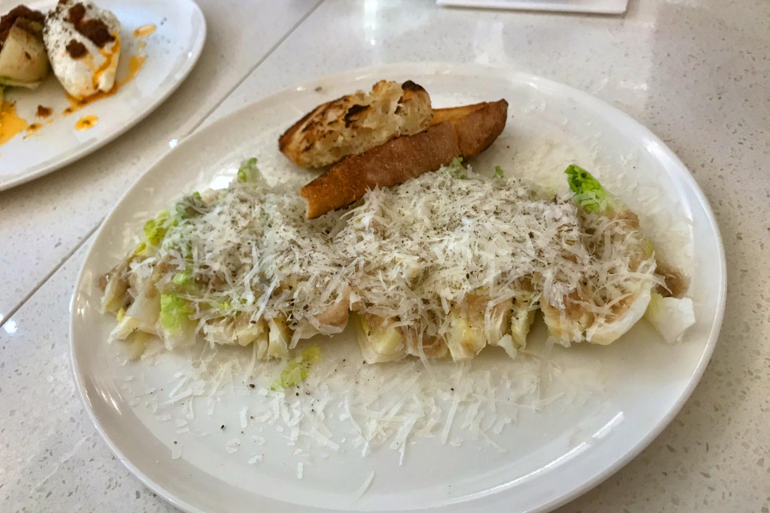 One is the Spanish gem lettuce with parmigiano reggiano and light anchovy dressing ($9).
