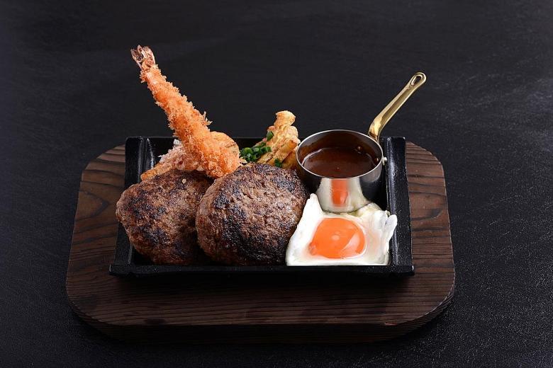 Teppanyaki Hamburg Nihonbashi Keisuke Bettei (72, Peck Seah Street), featuring beef patties seared on a teppanyaki grill, is the first hamburger concept from the Keisuke Group. Only two dishes are available, Keisuke Prime Beef Hamburg Set ($18.80) or Triple Cheese Prime Beef Hamburg Set ($20.80), and either will satisfy. Best of all, the deliciously stocked salad bar is open to you, with a free offer of eggs.