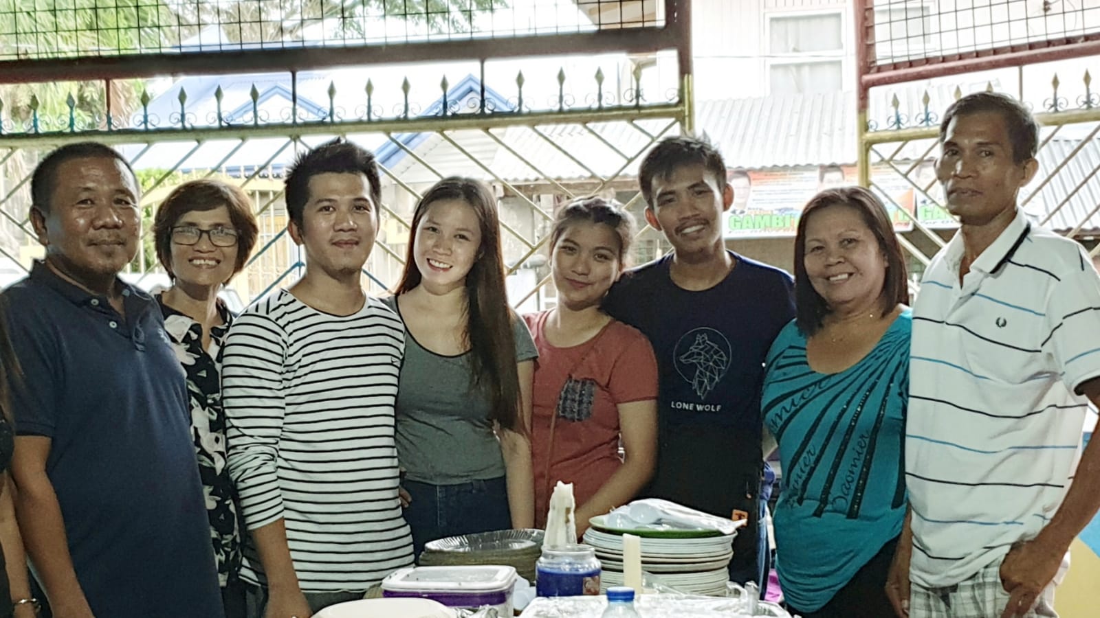 Mr Lucky Darl Amor Nariz Matias (third from left) met his fiancée (on his left) while working in Singapore. Pictured with them are his parents and his fiancée's family. PHOTO: LUCKY DARL AMOR NARIZ MATIAS