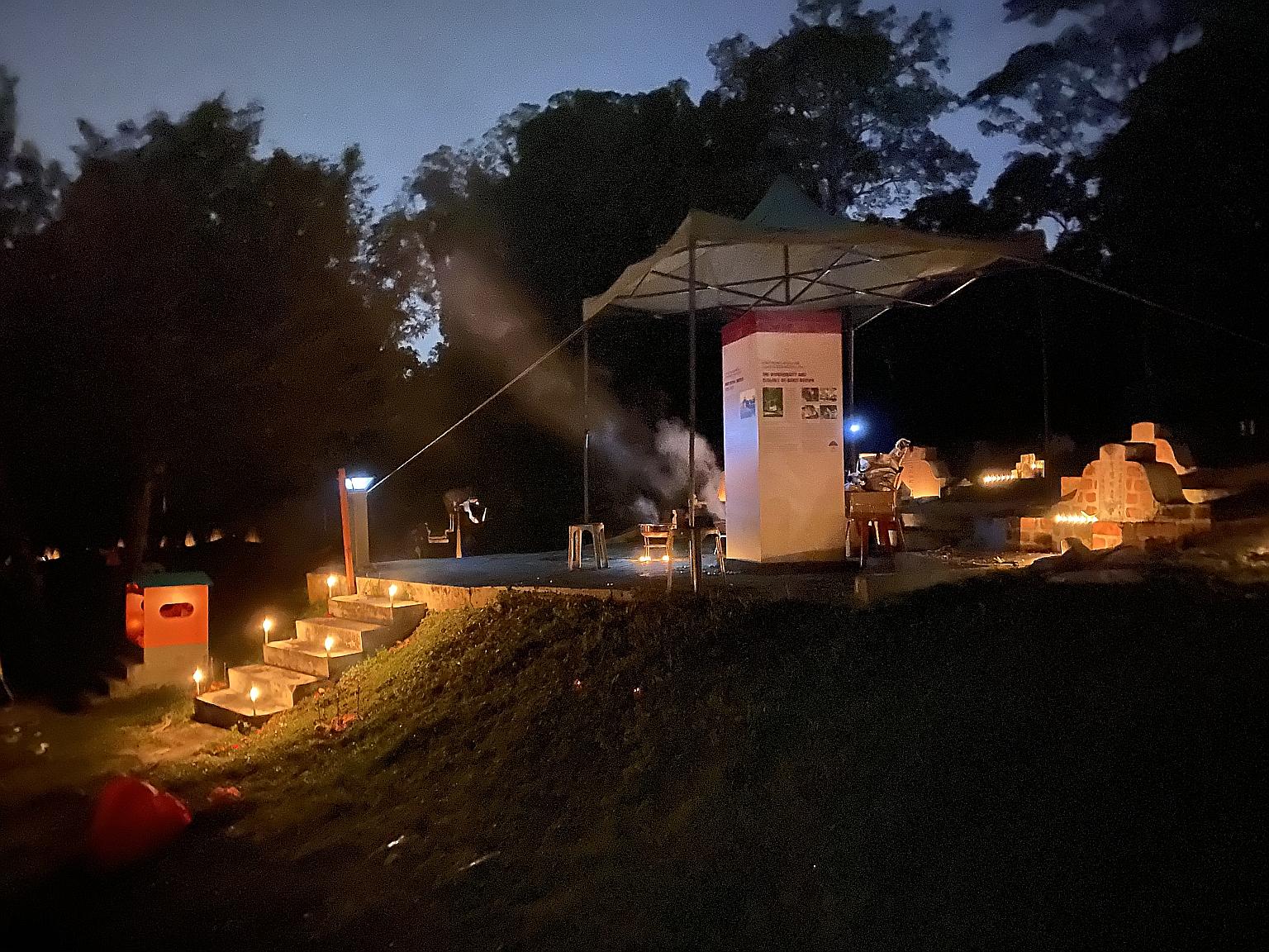 The 162ha Bukit Brown cemetery, which was closed in 1973, is the final resting place for some of Singapore's earliest pioneers. Some families have come to the cemetery at night to place offerings for the Hungry Ghost Festival from Aug 19 to Wednesday.