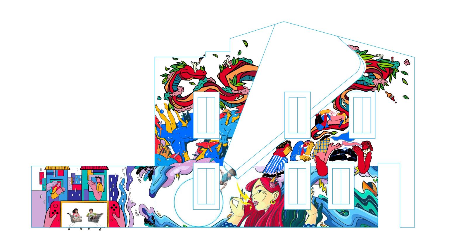 An impression of the upcoming mural in Kampong Glam, on the building walls of experiential marketing agency amc asia!.