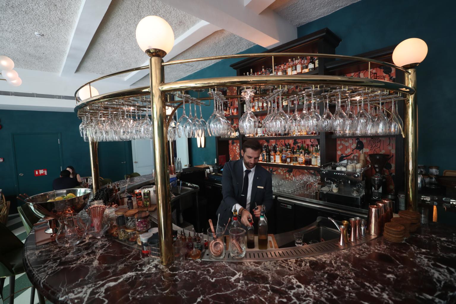 There is even a jade-green onyx wall in the bistro inspired by tabletops in traditional coffee shops, while the one between the lobby and restaurant comprises cement breeze blocks reminiscent of old houses.