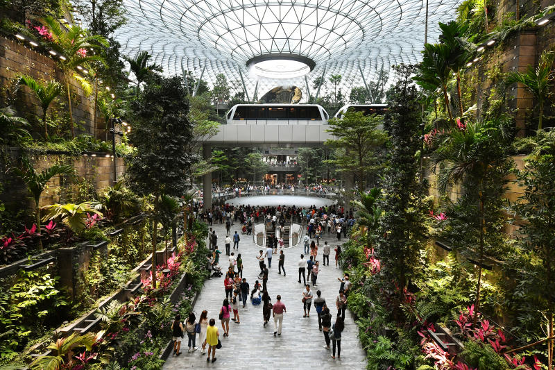 Designed by award-winning architecture firm Safdie Architects, the centrepiece of Jewel is a 40m indoor waterfall alongside a five-storey garden with more than 2,000 trees and 100,000 shrubs from all over the globe.