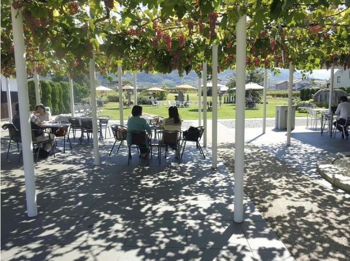 The areas that wineries dot are usually accessible only by car, meaning whoever drives cannot drink. But Katsunuma is free from such problems - it takes just 10 minutes by taxi from JR Katsunuma Budokyo Station to reach Miyakoen, a facility from where visitors can stroll around many of the about 30 wineries scattered across the area.