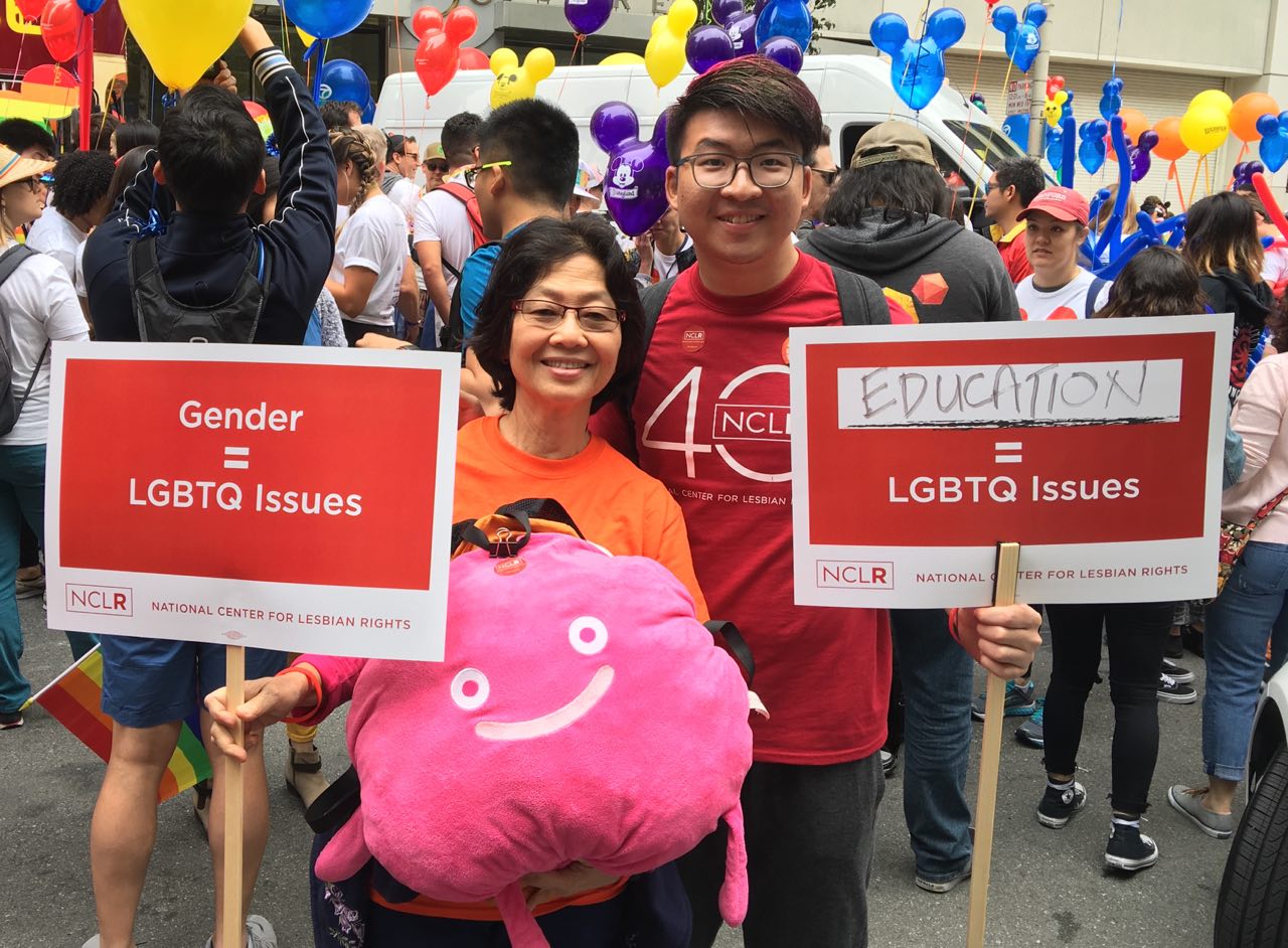 Daryl Yang, 25, with Yale-NUS College professor Khoo Hoon Eng marching at the San Francisco Pride parade with the National Center for Lesbian Rights in June 2016. Mr Yang was an intern at the Center.