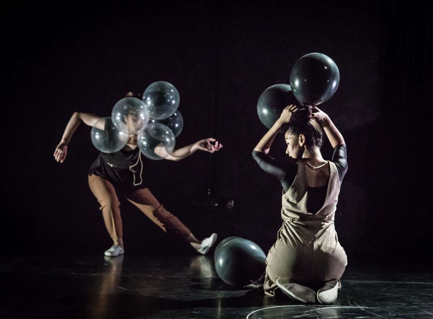 In another scene, balloons were used as pillows. As the dancers rested their heads precariously on them, the probability of them bursting from the weight of the dancers' heads created palpable tension.