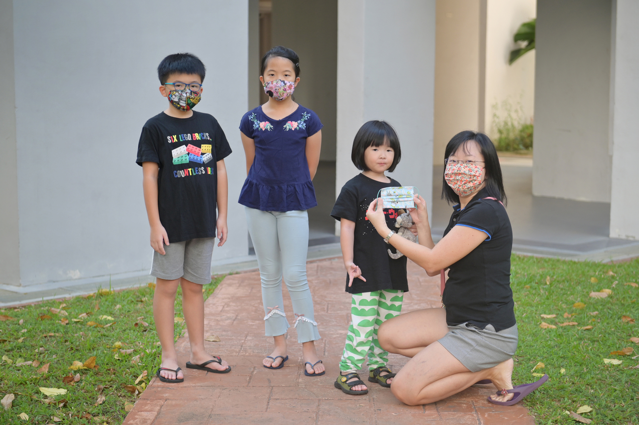 Home-based crafter Jacquelene Pang (right) adapted various mask designs to fit children and toddlers as many parents are unable to find masks for their kids.