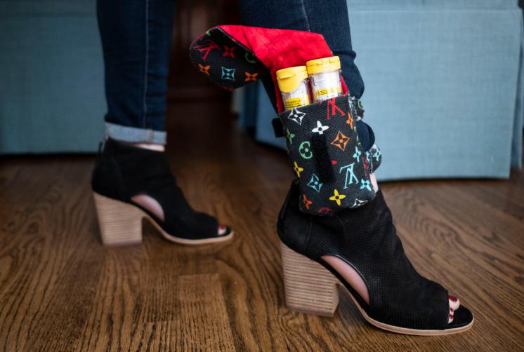 An allergy sufferer with EpiPens strapped to her ankle for emergencies - and as a way to signal her condition to others.