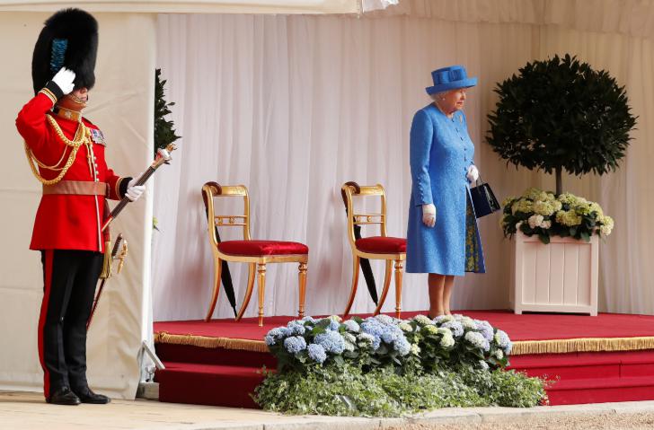 Queen Elizabeth waiting to receive US President Donald Trump and US First Lady Melania Trump in Windsor Castle in Windsor on July 13, 2018.