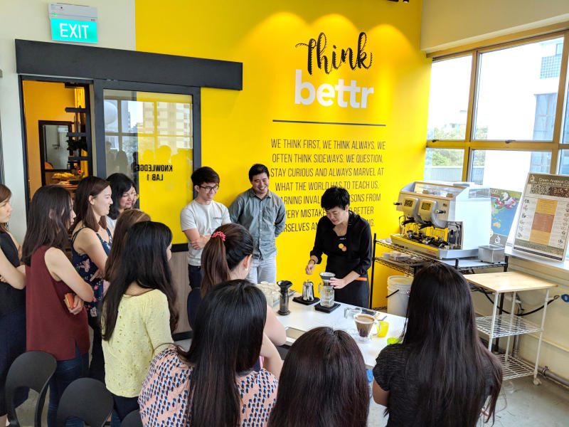 Pamela Chng (in black), founder of Bettr Barista, conducting a coffee-related workshop. Bettr Barista has a four-month holistic training programme for women aged 17 to 50, as well as at-risk youth of both genders such as school dropouts.