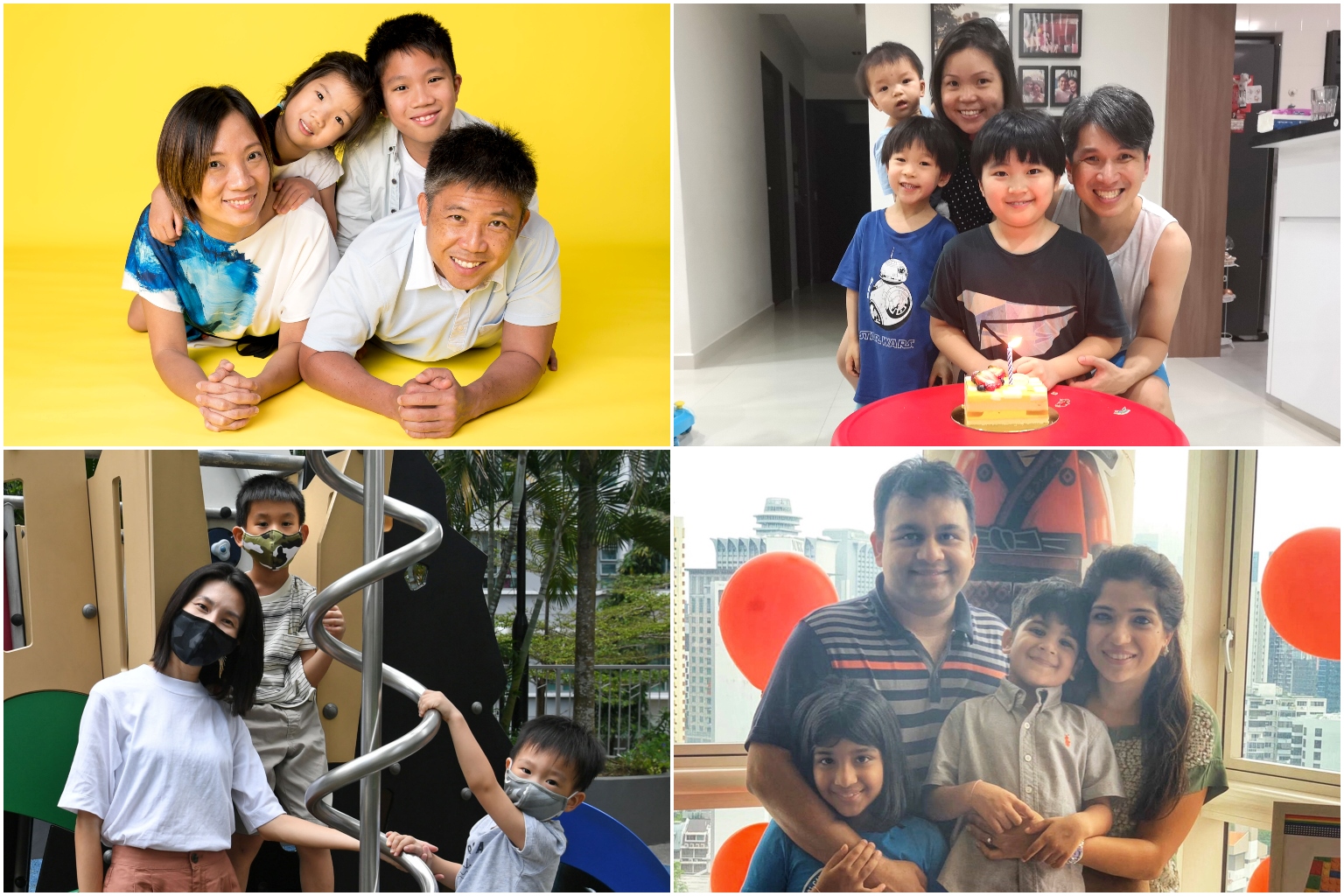 (Clockwise from top left) Families of Ms Serene Seah, Mr Dennis Dew, Ms Ruchi Parekh and Ms Serene Wu.