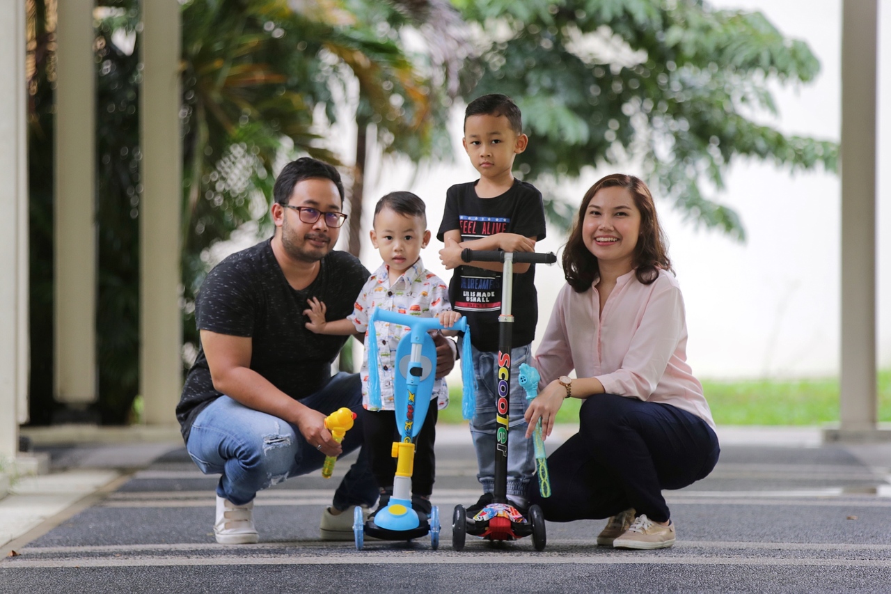 Senior Educational Therapist Sofia Bte Abdollah (right), (from left) her husband Operations Manager Juandy Bin Samsuri and their children Harel Bin Juandy and Elham Bin Juandy.