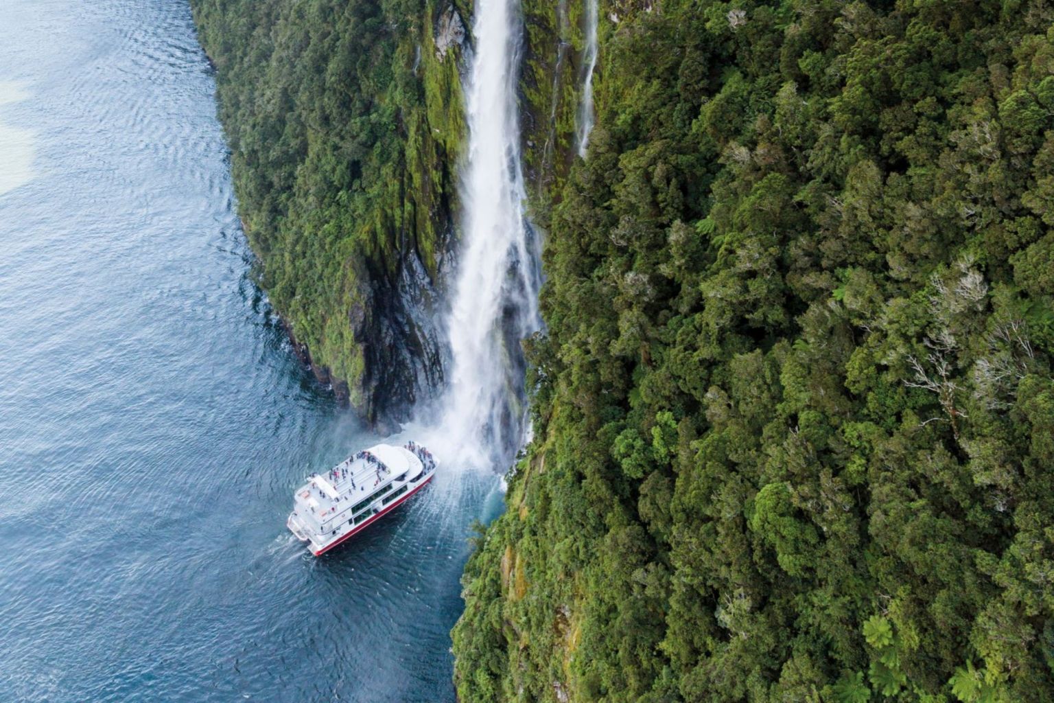 From Christchurch, you can make your way to Milford Sound. Just over four hours from Queenstown by car, the glacier-carved fjord is best explored from the comfort of a cruise that takes you past towering mountain peaks, cascading waterfalls and unique flora.