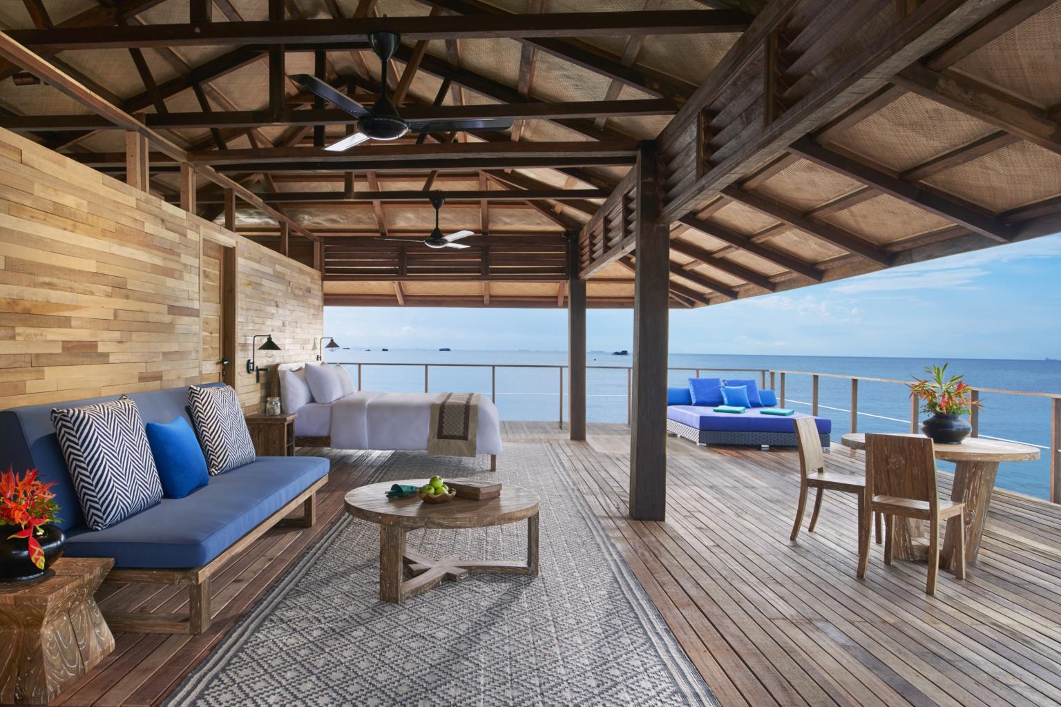 Living area of Banyan Tree Bintan's kelong villa.