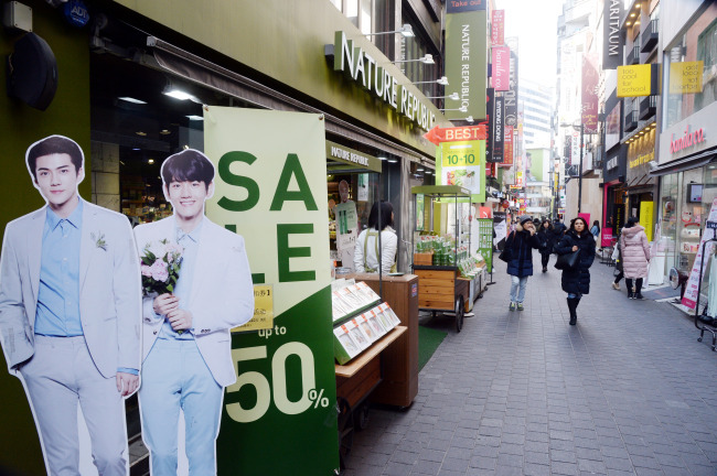 Some shop owners in Myeongdong said their income halved over the past few months. Since mid-2016, the Korean government and the media have denounced China's action to curb cultural exchanges between the two nations, calling it "retaliation" against the deployment of Thaad in Korea.