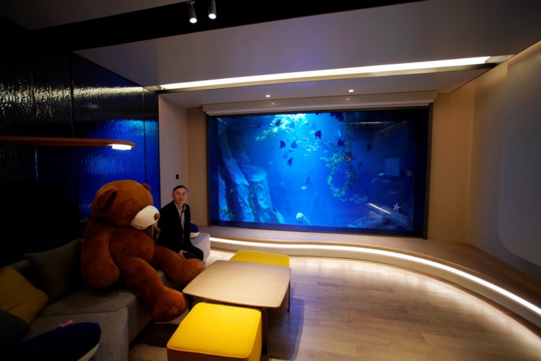There is a floor of suites below the water level, but don't expect to gaze directly into the depths of Shenkeng Quarry - the windows are instead buffered by large fish tanks.